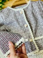 سایز۵:قدکت۳۸ عرض۳۸ قدآستین۳۸ قدتاپ۳۷ عرض۳۰ قددامن۳۵ عرض کمر۲۵ در حالت کشسانی۴۰