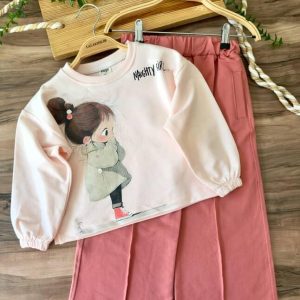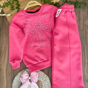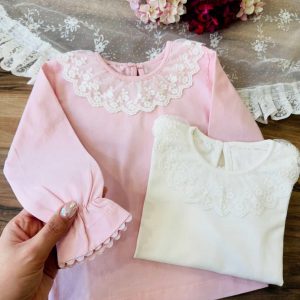 بلوز شلوار آستین قلاب بافی سرخابی کد 4251
