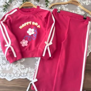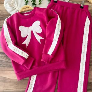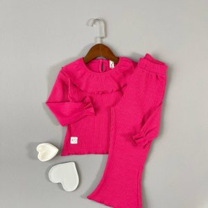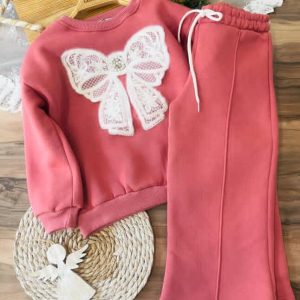 بلوز شلوار آستین قلاب بافی سرخابی کد 4251