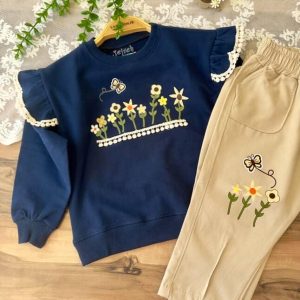 بلوز یقه گلدوزی و شلوار بگ کد 4238