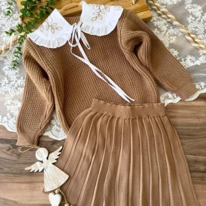 تیشرت یقه قلاب بافی و دامن ستاره کد 4319