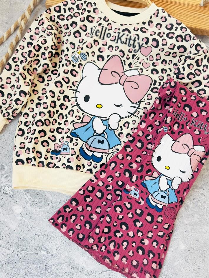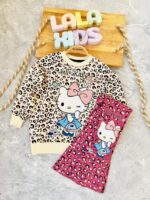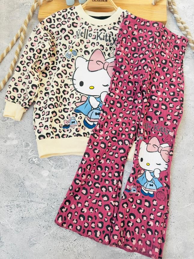 خانه دخترانه ست بلوز شلوار و تیشرت شلوار دخترانه بلوز شلوار دونخ کیتی کد 4244