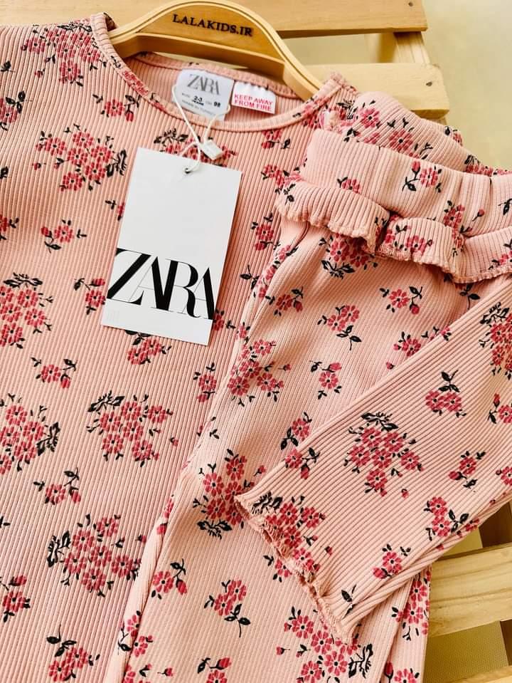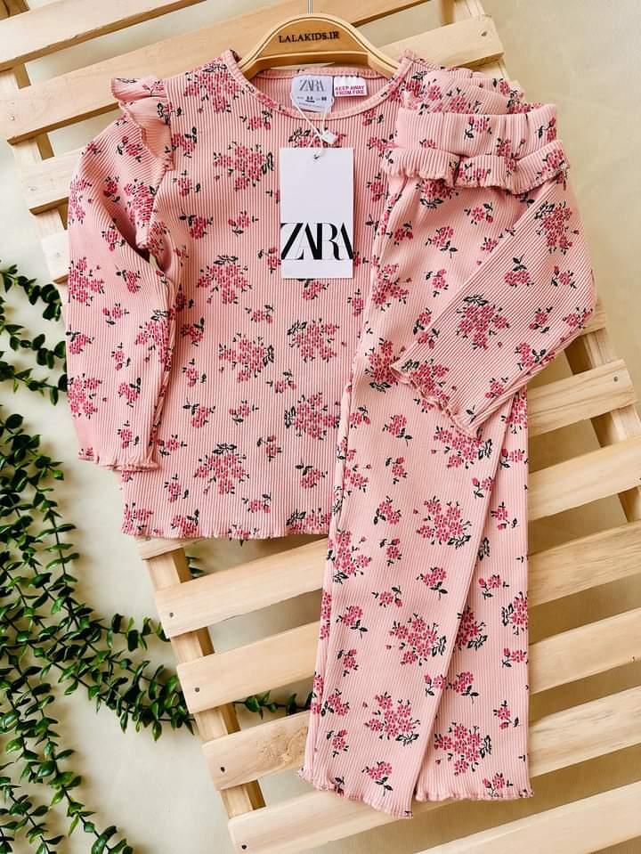 خانه دخترانه ست بلوز شلوار و تیشرت شلوار دخترانه بلوز شلوار کبریتی گلدار صورتی کد 3816