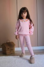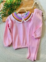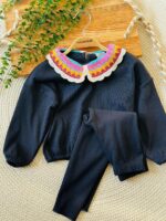 خانه دخترانه ست بلوز شلوار و تیشرت شلوار دخترانه بلوز شلوار کبریتی یقه رنگی کد 4152