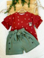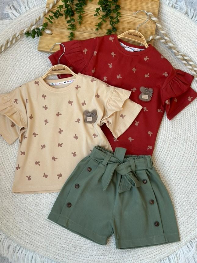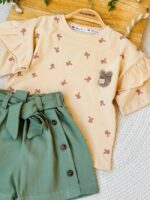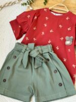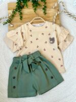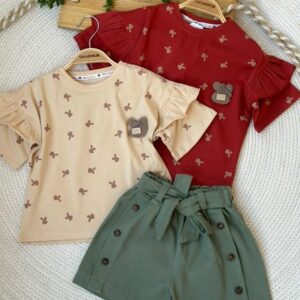 خانه دخترانه ست تیشرت شلوارک و تاپ شلوارک دخترانه تیشرت خرگوش شلوارک کتان کد 4298