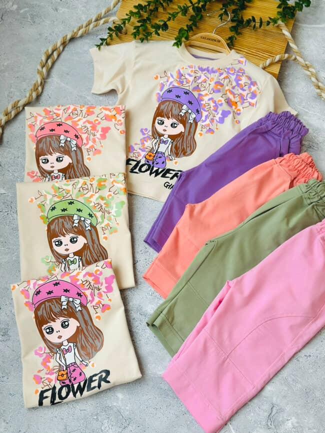 تیشرت شلوارک دختر گل گلی کد 4349