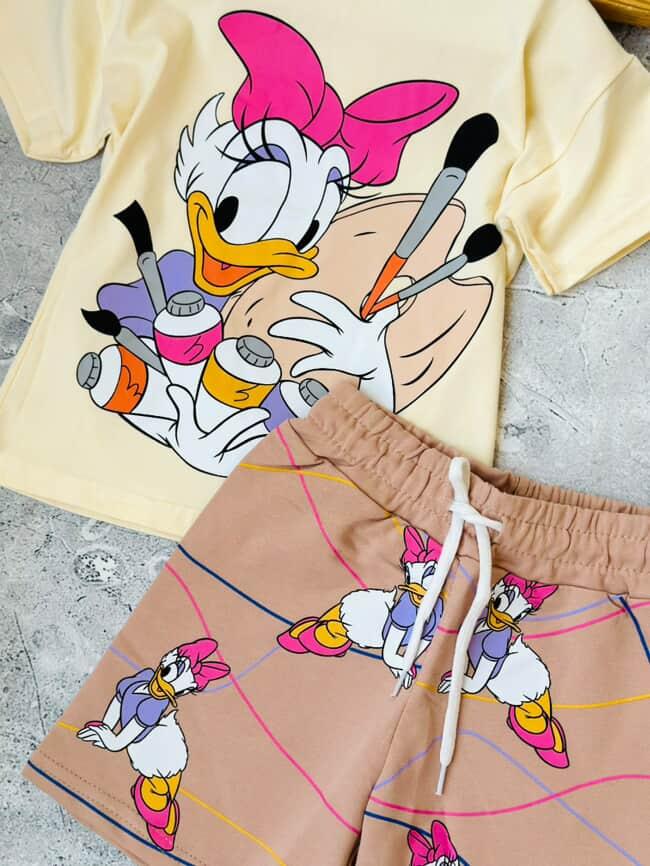 خانه دخترانه ست تیشرت شلوارک و تاپ شلوارک دخترانه تیشرت شلوارک دیسی نقاش کد 4343