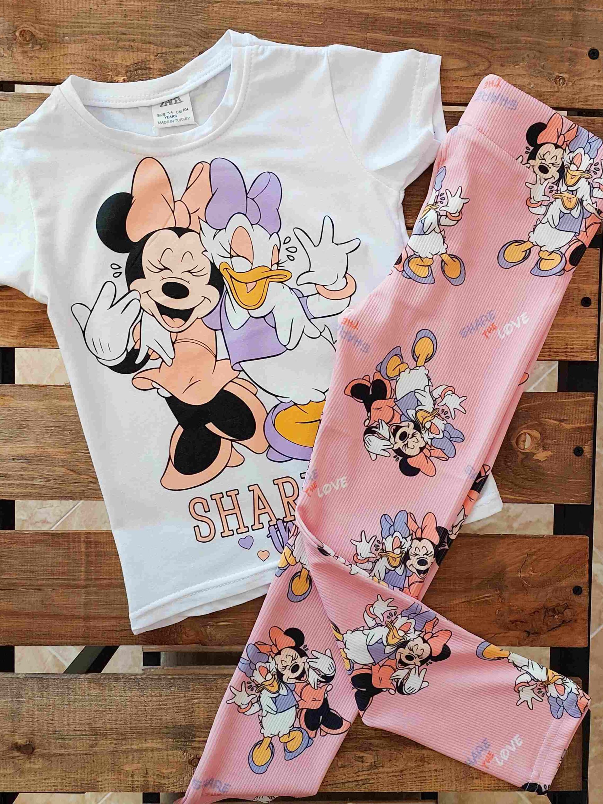 خانه دخترانه تیشرت میکی و دیسی و شلوار کبریتی کد 3523