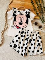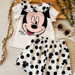 خانه دخترانه ست تیشرت شلوارک و تاپ شلوارک دخترانه تیشرت و شلوارک خالدار کد 3998