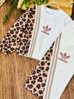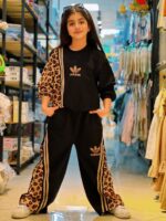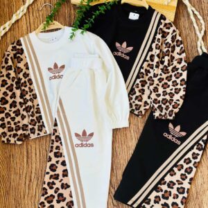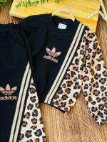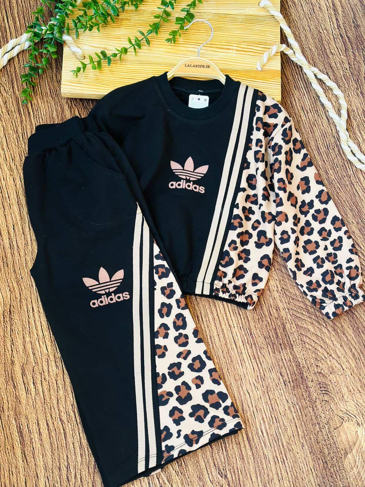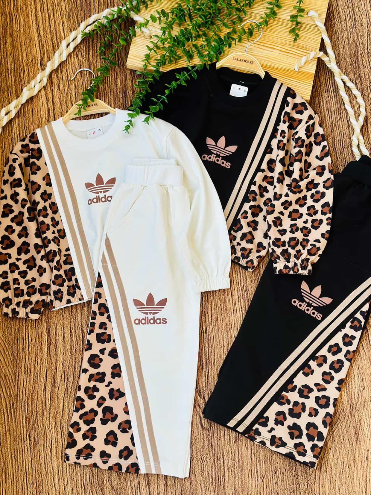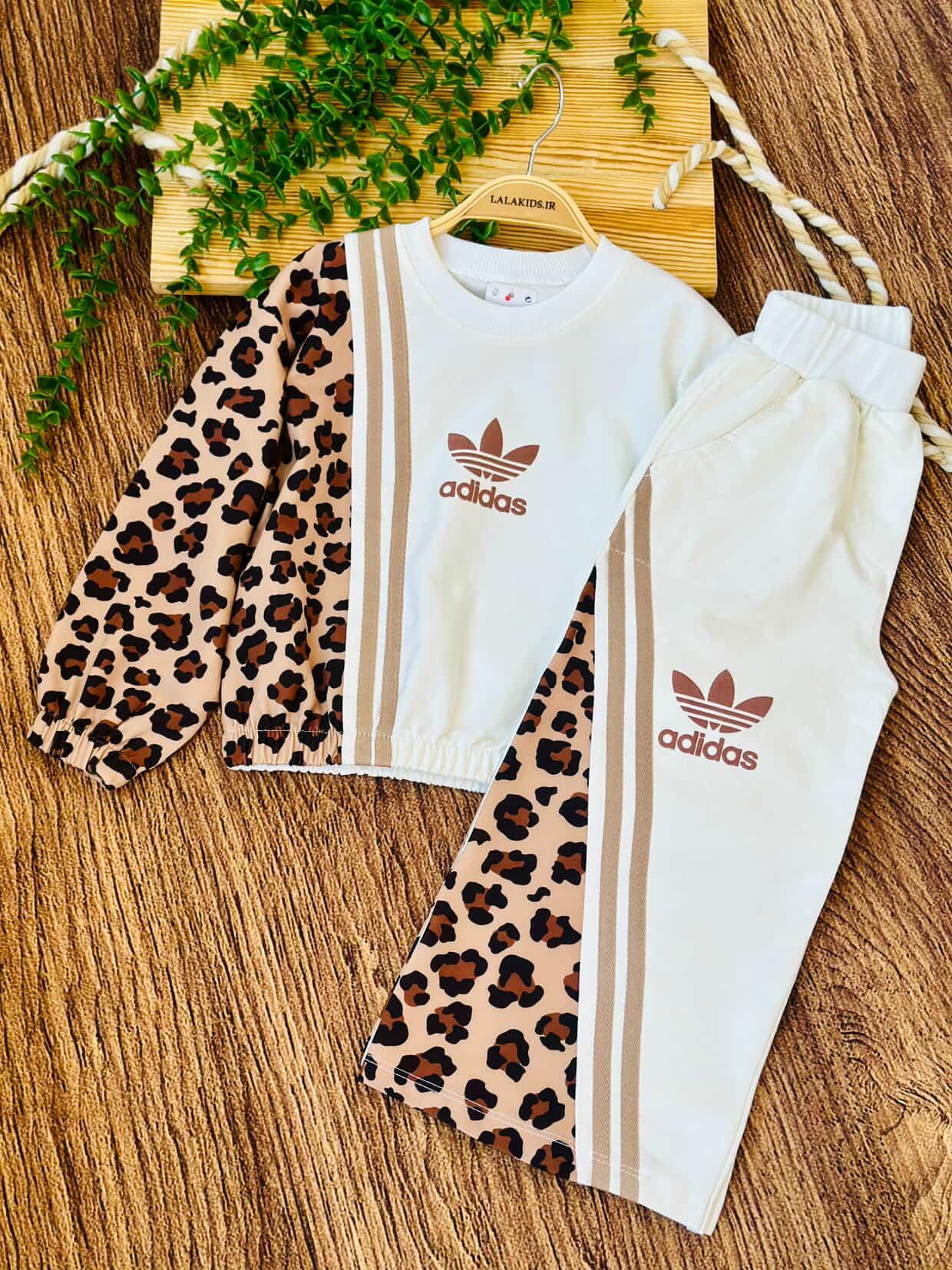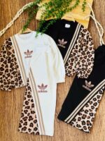 خانه دخترانه ست بلوز شلوار و تیشرت شلوار دخترانه کراپ و شلوار بگ پلنگی کد 4377