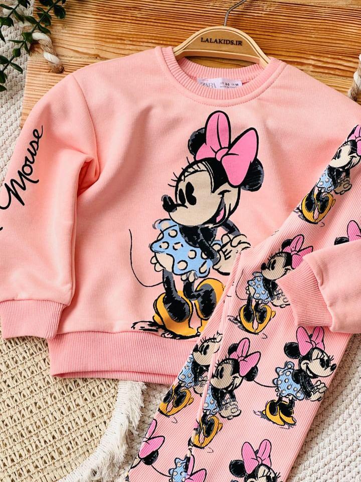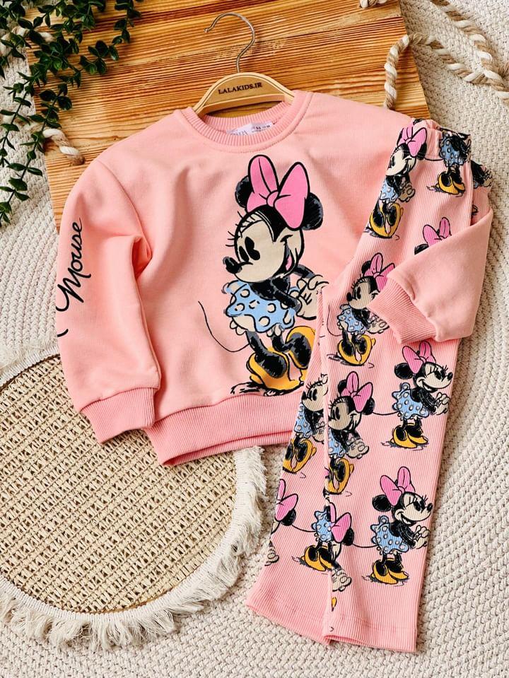 خانه دخترانه ست بلوز شلوار و تیشرت شلوار دخترانه بلوز دورس و شلوار کبریتی میکی کد 3889