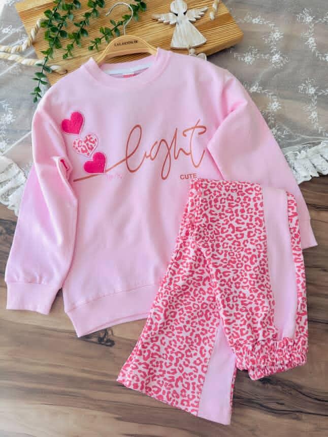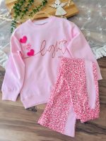 خانه دخترانه ست بلوز شلوار و تیشرت شلوار دخترانه بلوز سه قلب و شلوار دمپا کد 4397