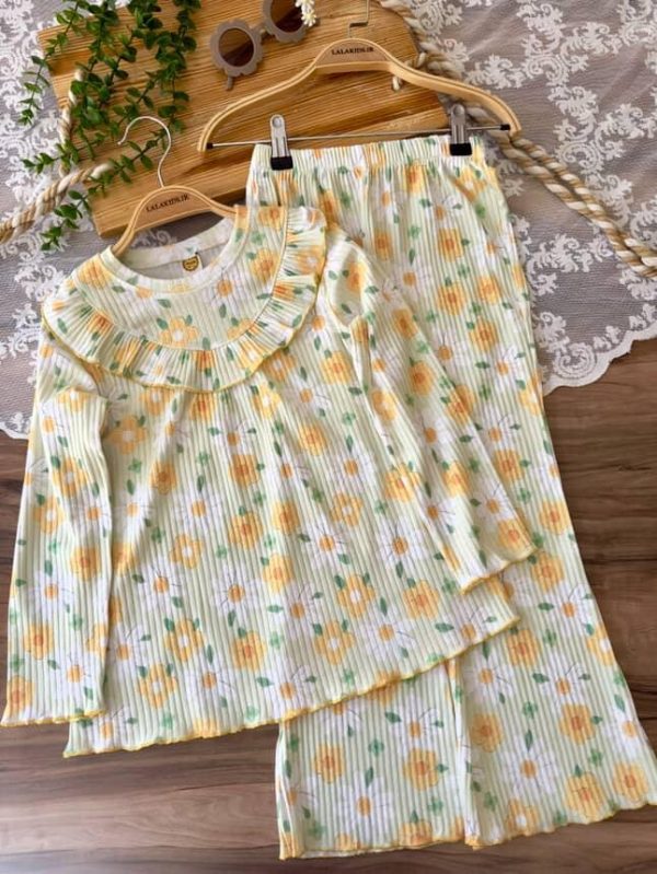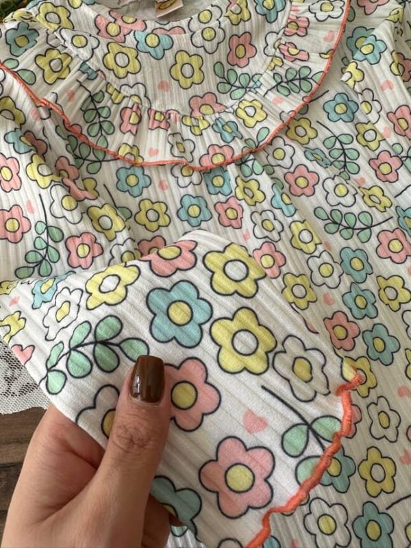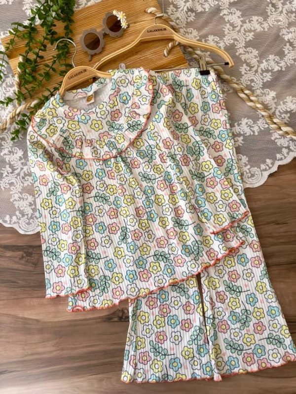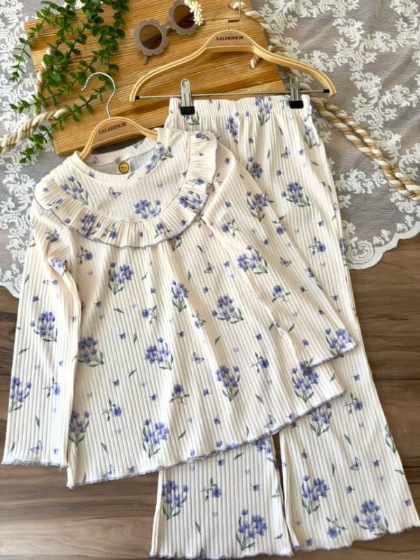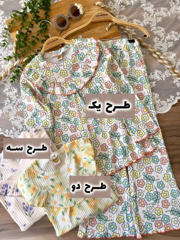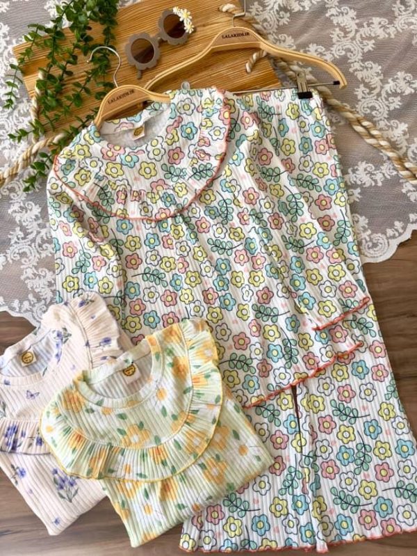 خانه دخترانه ست بلوز شلوار و تیشرت شلوار دخترانه بلوز شلوار ریلی گل گلی کد 4418