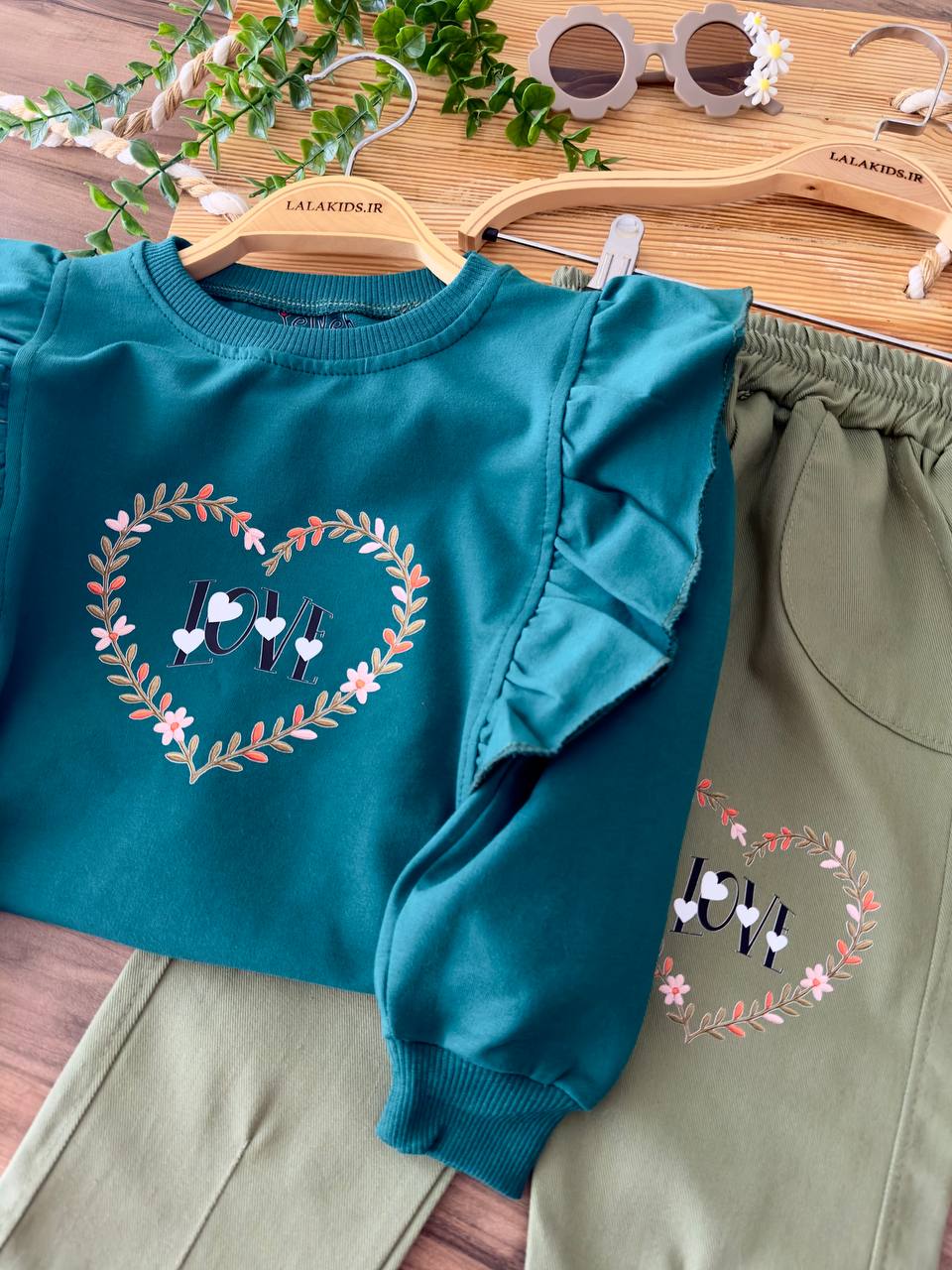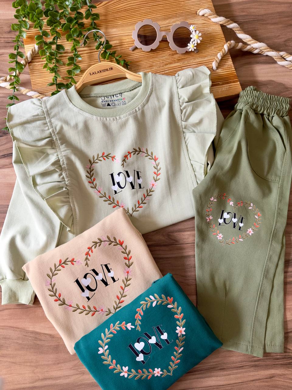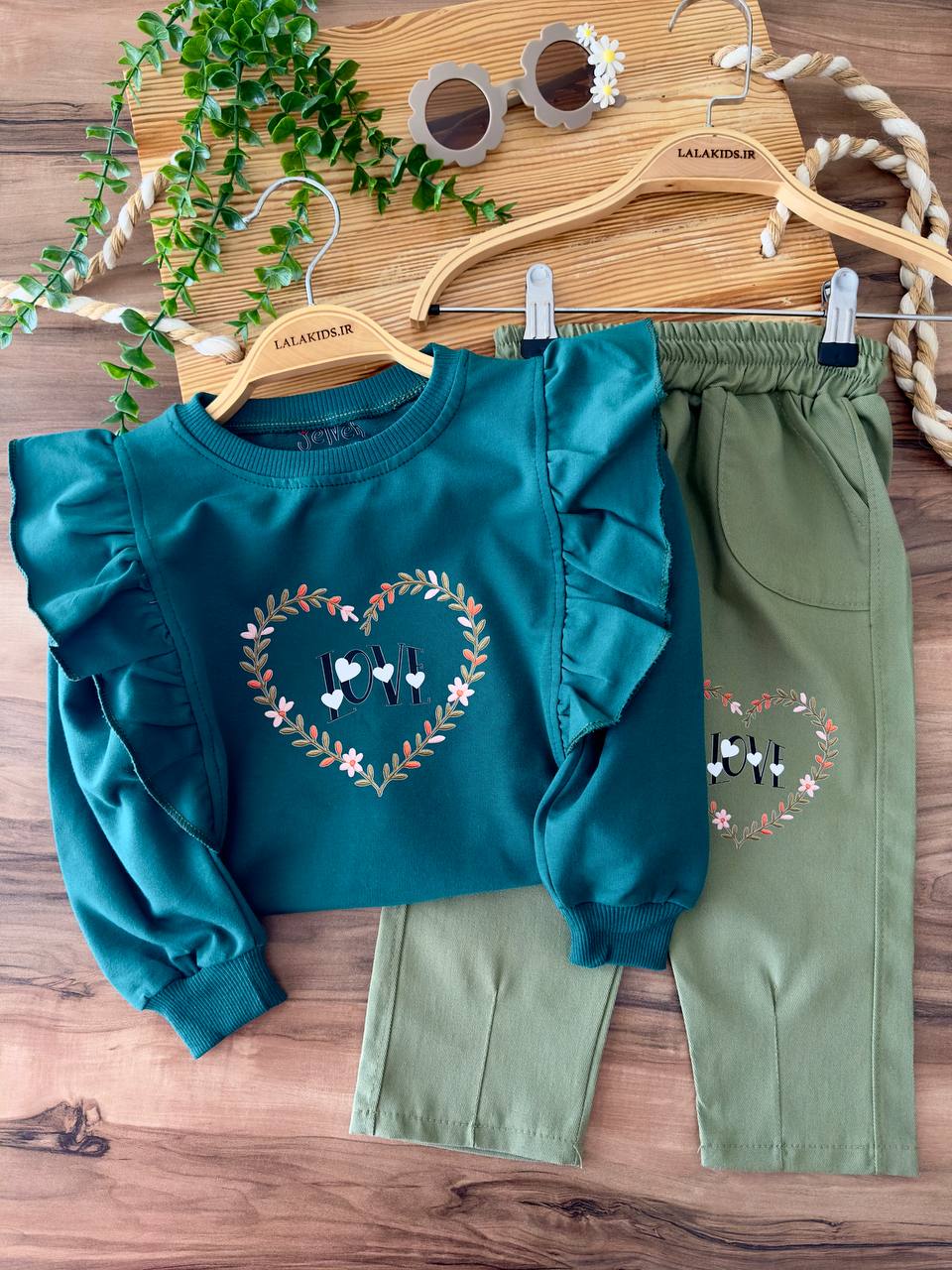 خانه دخترانه ست بلوز شلوار و تیشرت شلوار دخترانه بلوز شلوار طرح قلب کد 4457