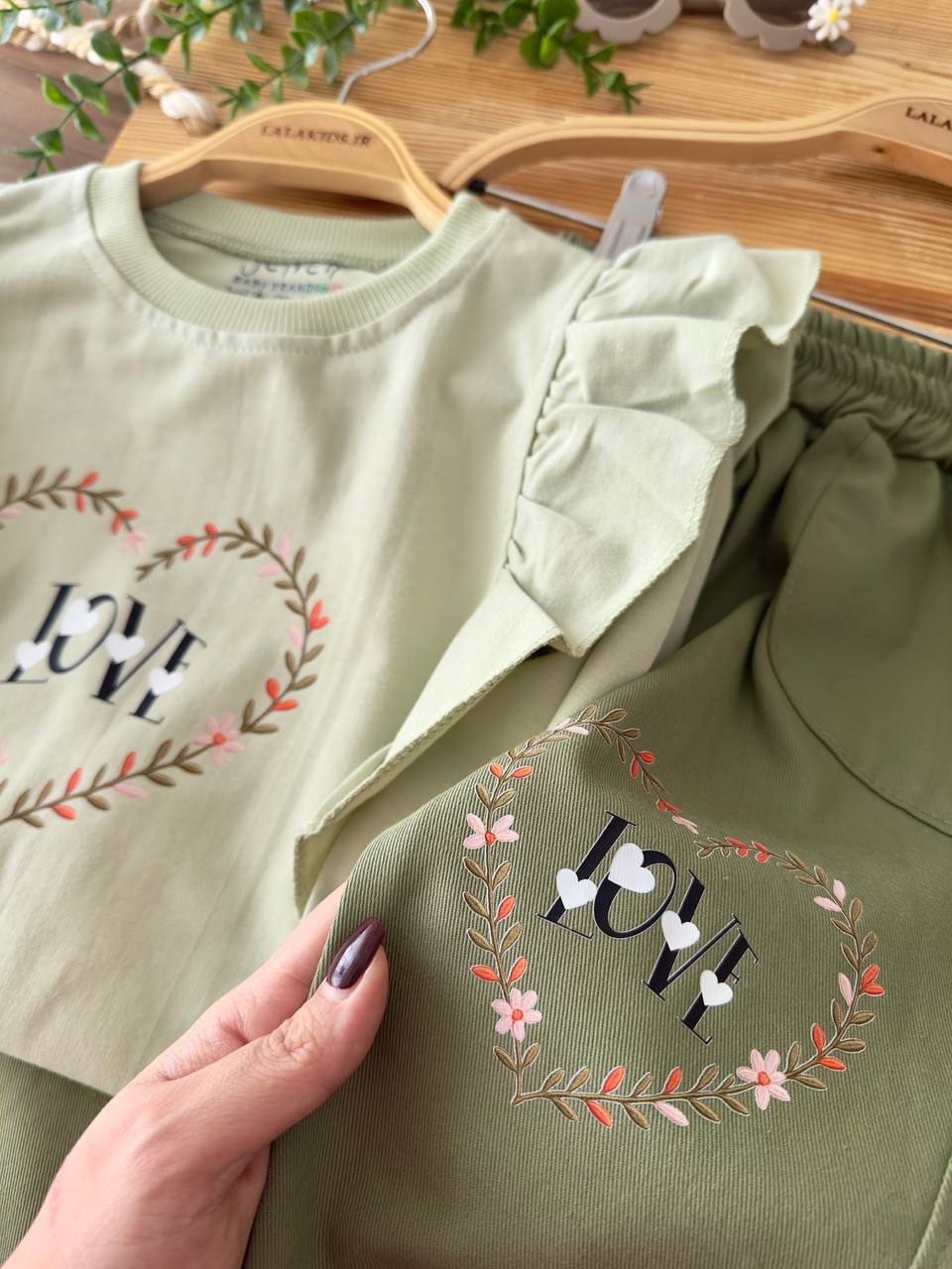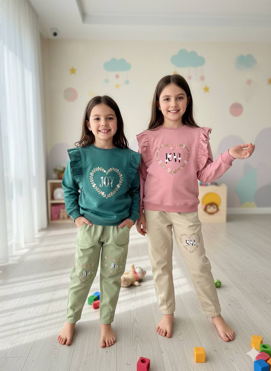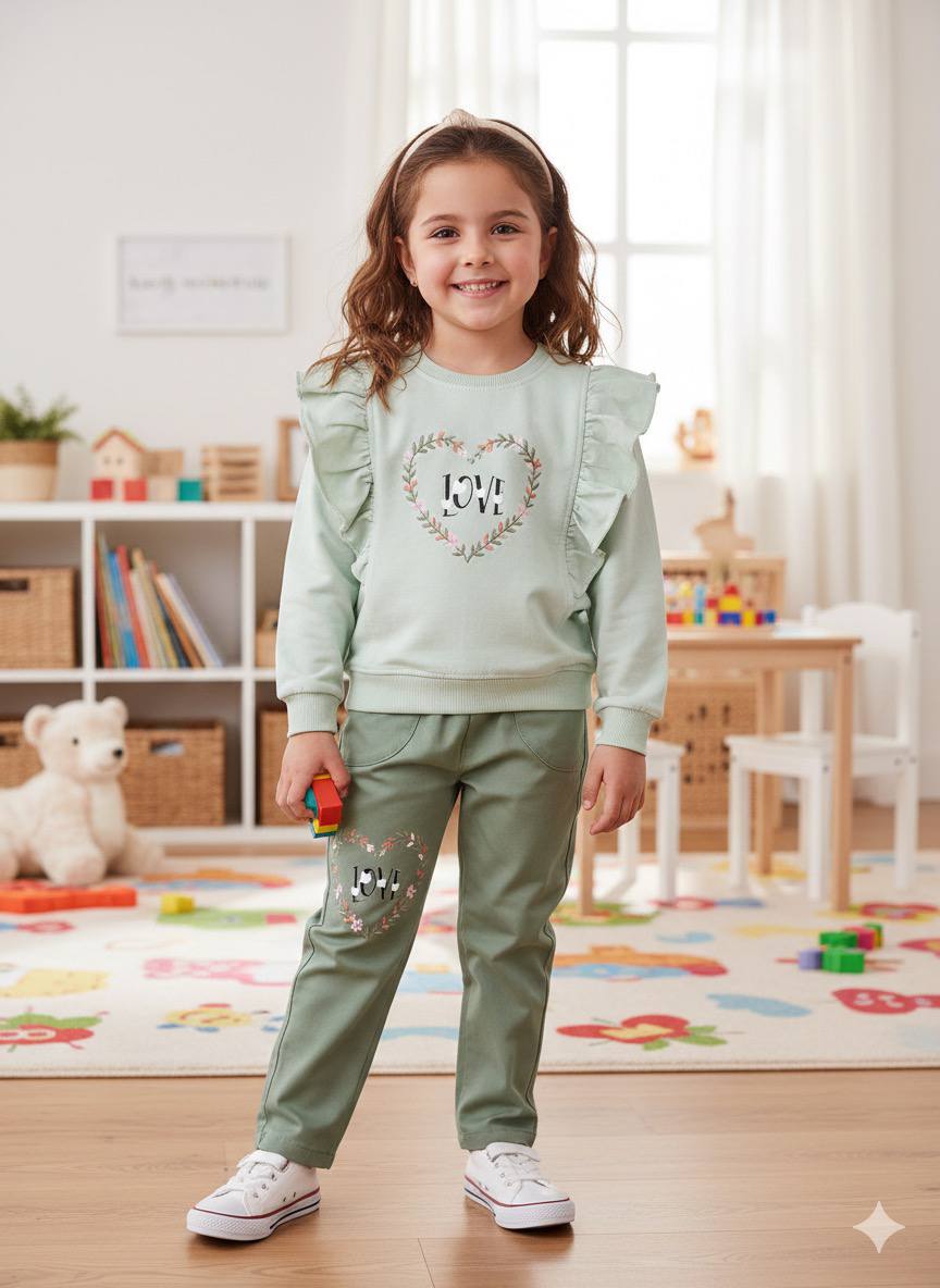 خانه دخترانه ست بلوز شلوار و تیشرت شلوار دخترانه بلوز شلوار طرح قلب کد 4457