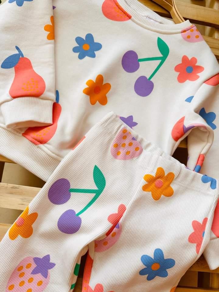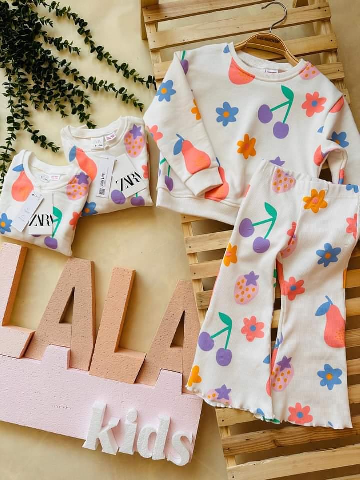 خانه دخترانه ست بلوز شلوار و تیشرت شلوار دخترانه بلوز شلوار طرح میوه کد 3694