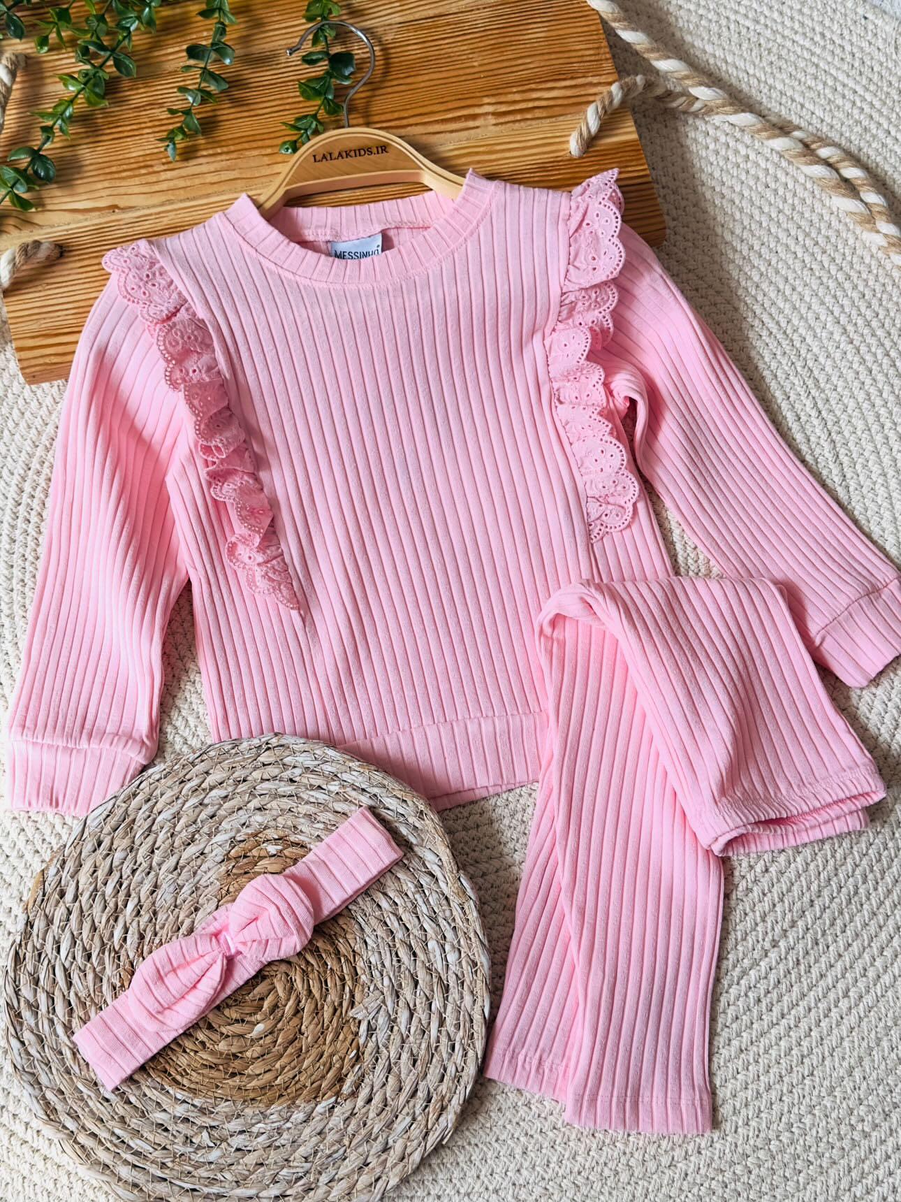 خانه دخترانه ست بلوز شلوار و تیشرت شلوار دخترانه بلوز شلوار و تل کبریتی کد 4092