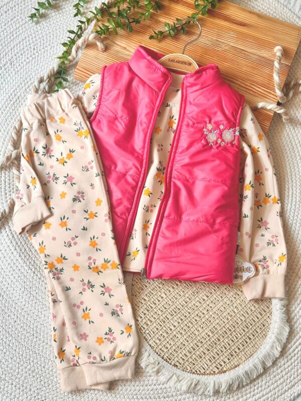خانه دخترانه ست سه تکه دخترانه بلوز شلوار و پافر کد 1434