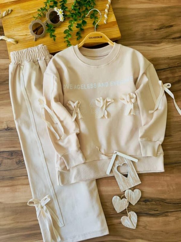 خانه دخترانه ست بلوز شلوار و تیشرت شلوار دخترانه بلوز شلوار پشت پاپیون کد 4414
