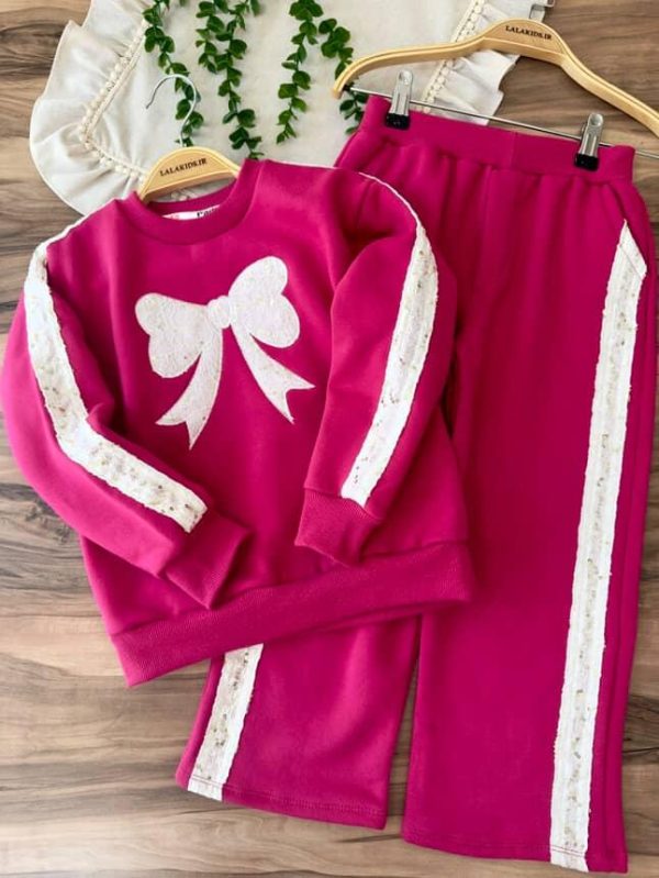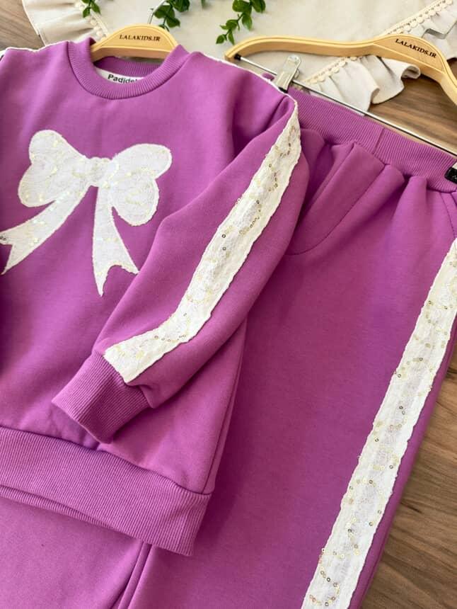 خانه دخترانه ست بلوز شلوار و تیشرت شلوار دخترانه بلوز شلوار پولکی پاپیون کد 4410