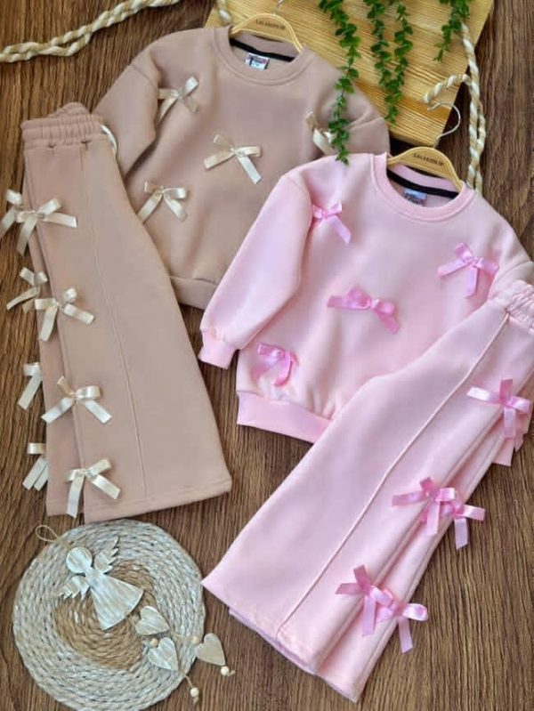 خانه دخترانه ست بلوز شلوار و تیشرت شلوار دخترانه بلوز و شلوار پاپیون ترک کد 4393