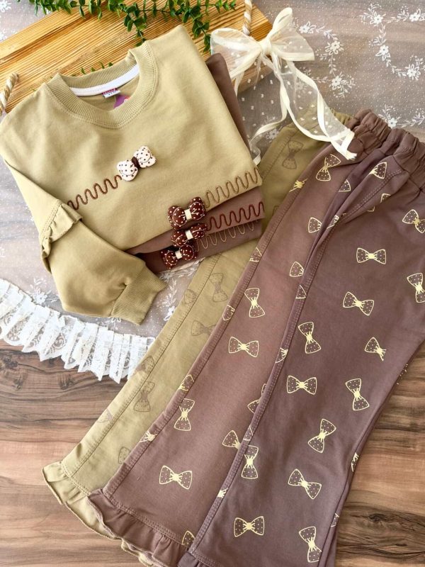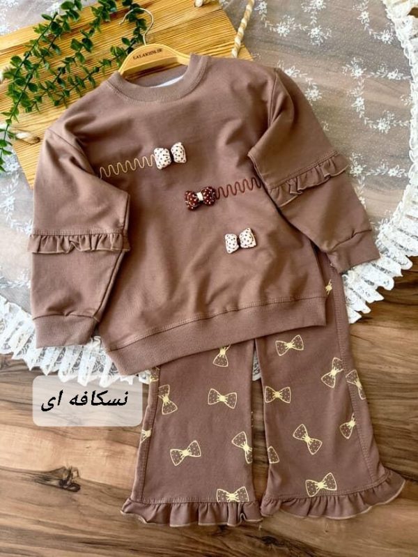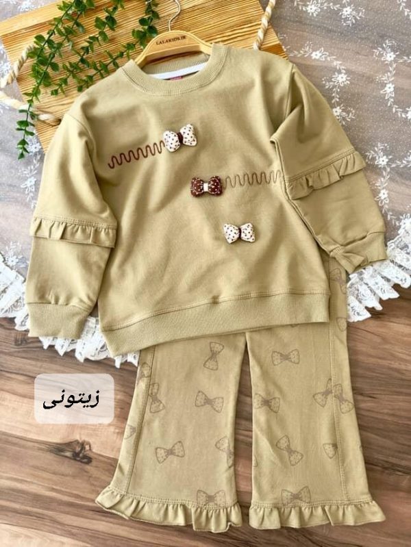 خانه دخترانه ست بلوز شلوار و تیشرت شلوار دخترانه بلوز پاپیون و شلوار چیندار کد 4399