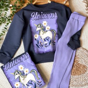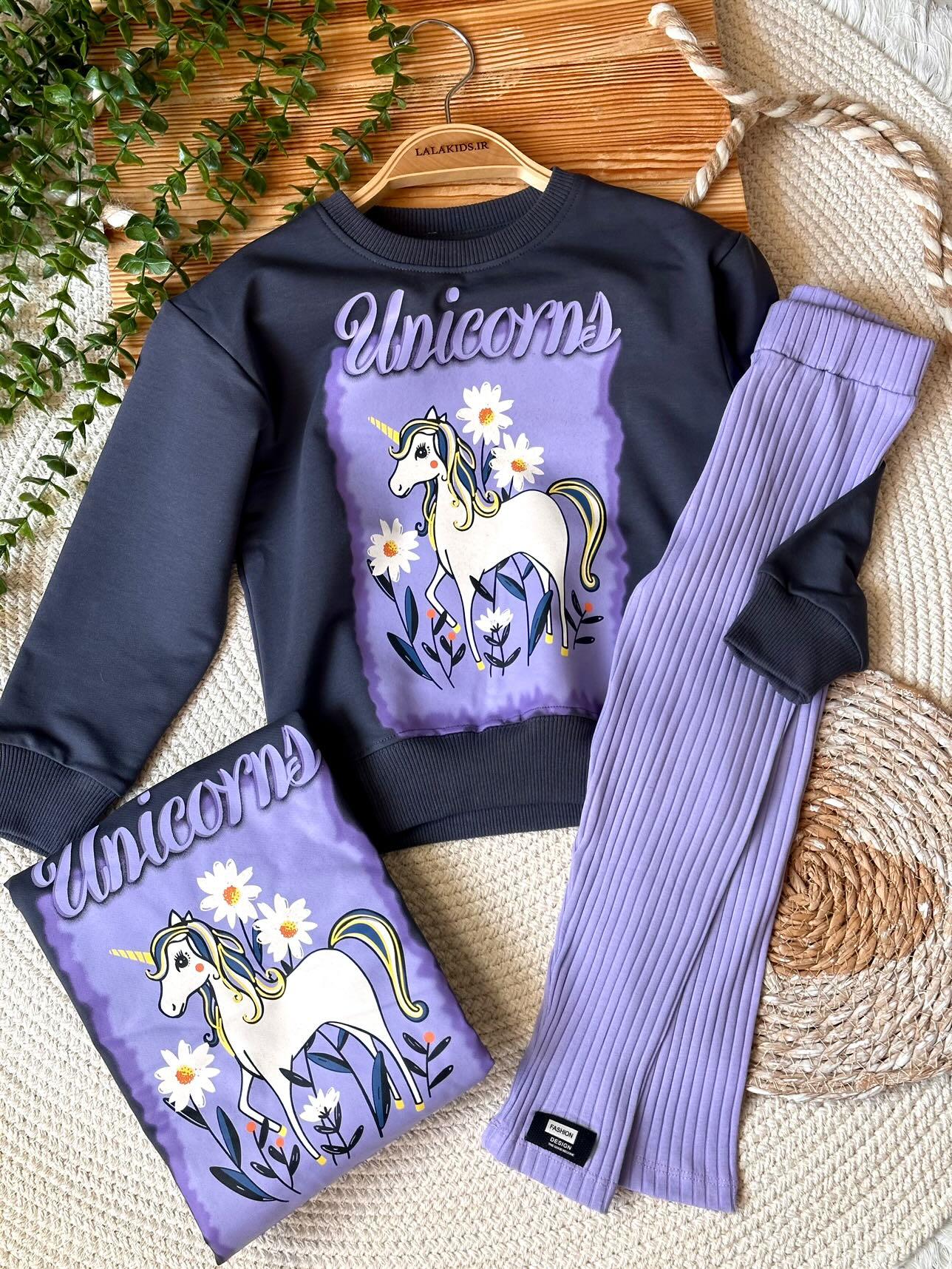 خانه دخترانه ست بلوز شلوار و تیشرت شلوار دخترانه بلوز پونی و شلوار یاسی کد 4040