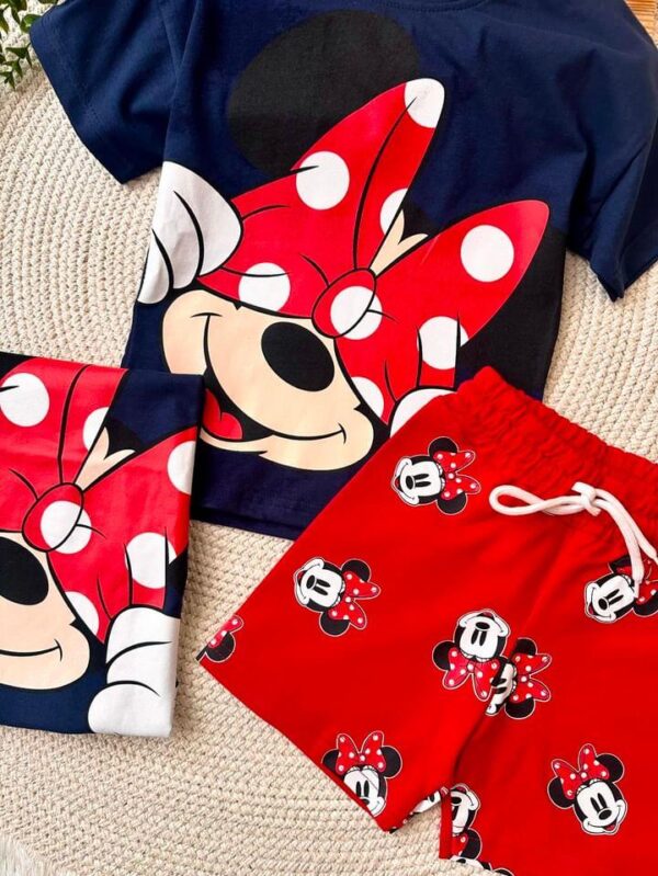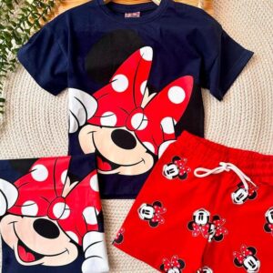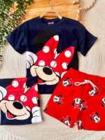 خانه دخترانه ست تیشرت شلوارک و تاپ شلوارک دخترانه تیشرت سورمه ای و شوارک کد 3932