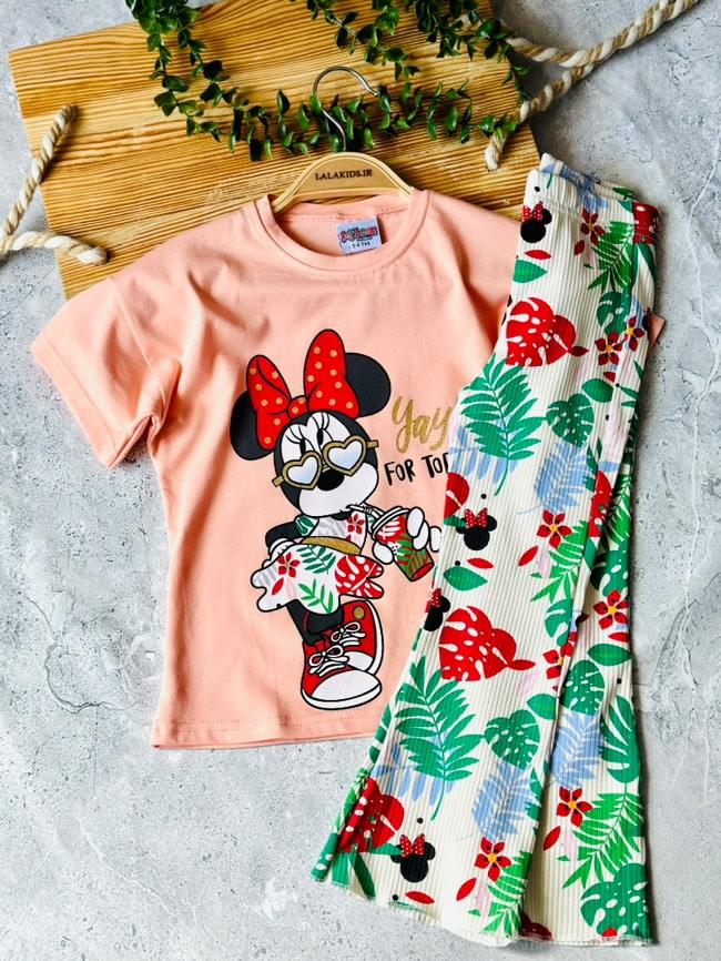 خانه دخترانه ست بلوز شلوار و تیشرت شلوار دخترانه تیشرت شلوار پاپیون خالدار کد 4285