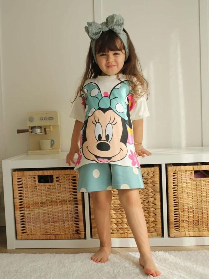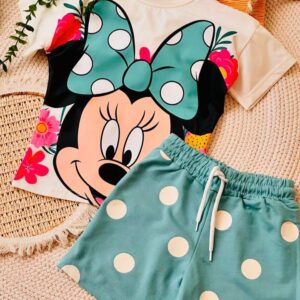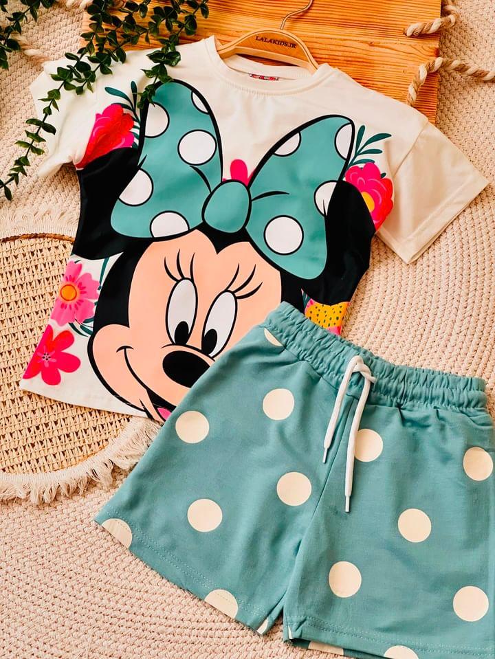 خانه دخترانه ست تیشرت شلوارک و تاپ شلوارک دخترانه تیشرت مینی خال خال و شلوارک کد 3937