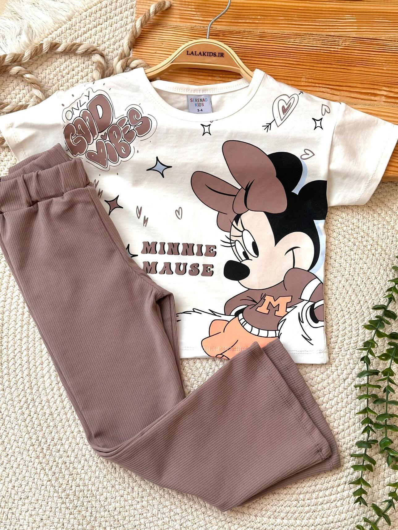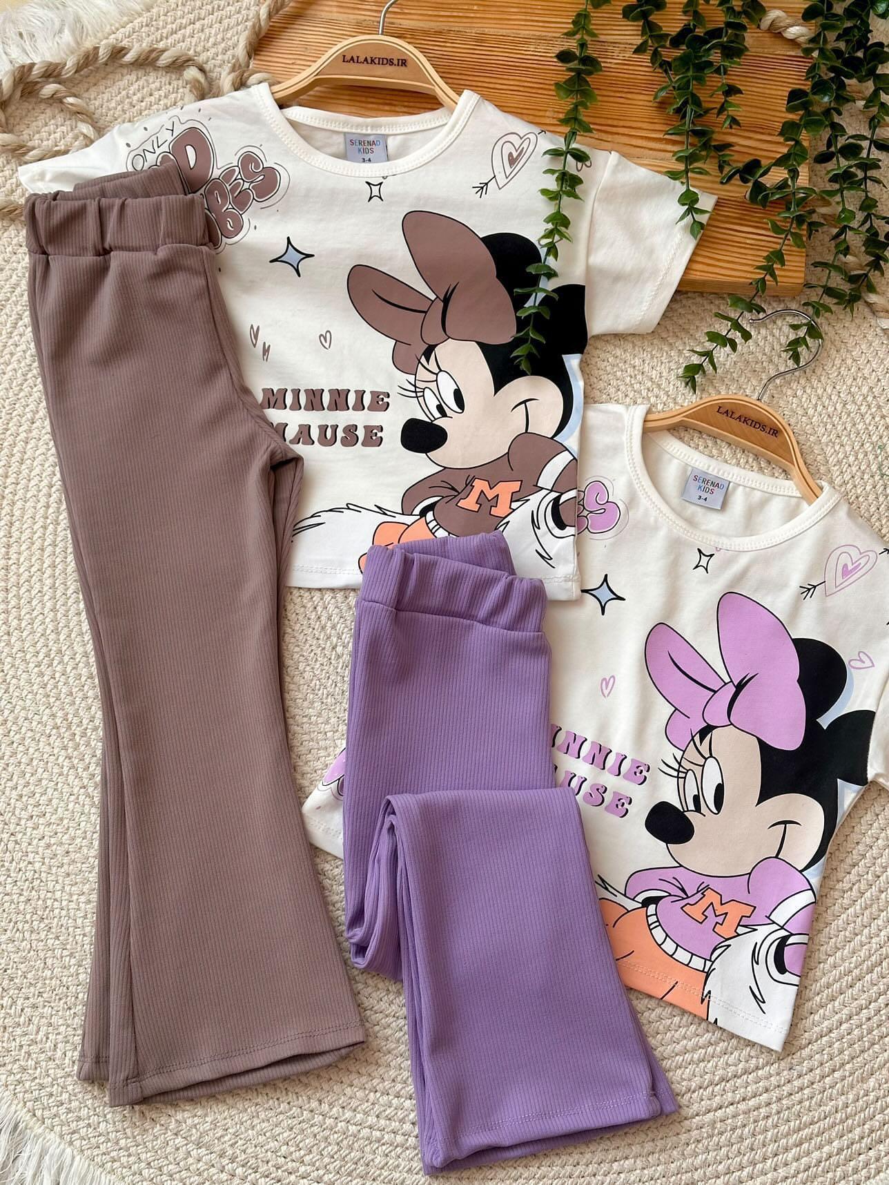 خانه دخترانه ست بلوز شلوار و تیشرت شلوار دخترانه تیشرت میکی و شلوار کبریتی دمپا کد 3872