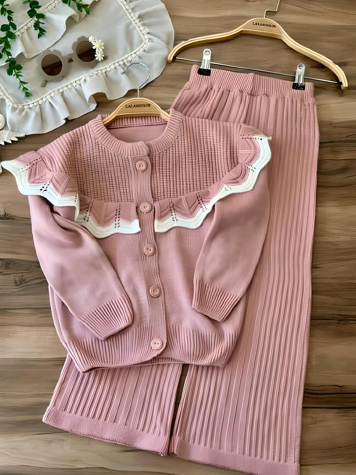 خانه دخترانه ست بلوز شلوار و تیشرت شلوار دخترانه ست بافت ترند کد 4427