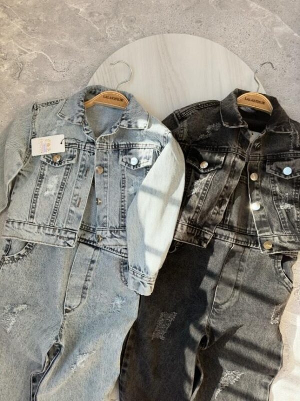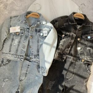 خانه دخترانه کت جین، هودی و سوئیشرت دخترانه ست بیلر و کت جین کد 4229