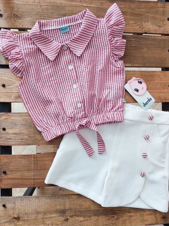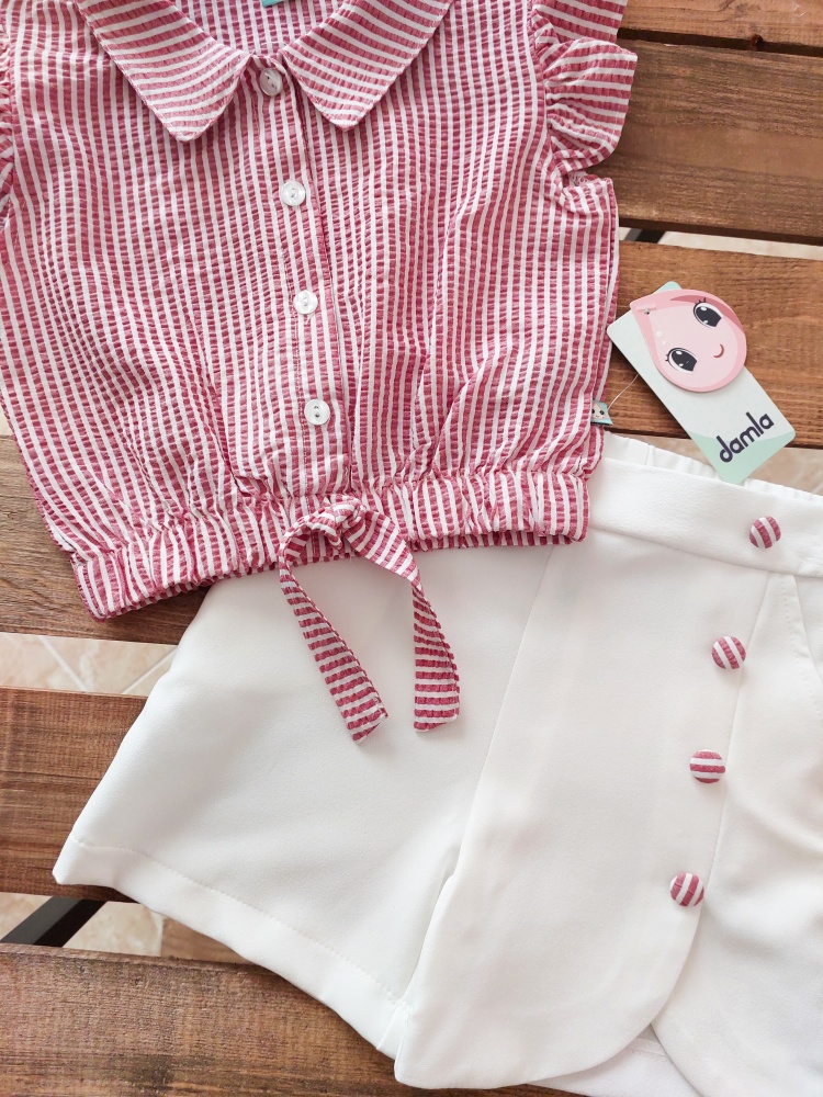 تاپ جلو چیندار و شورتک کد 3996