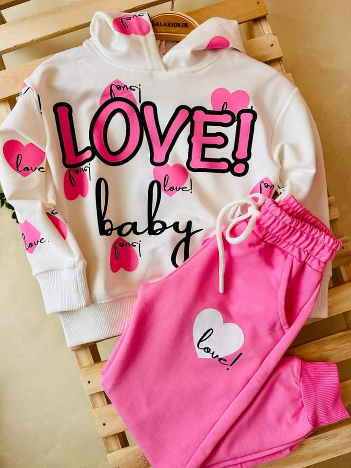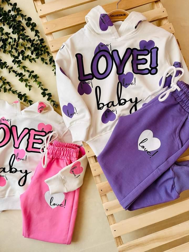 خانه دخترانه ست بلوز شلوار و تیشرت شلوار دخترانه هودی شلوار قلبی کد 3673