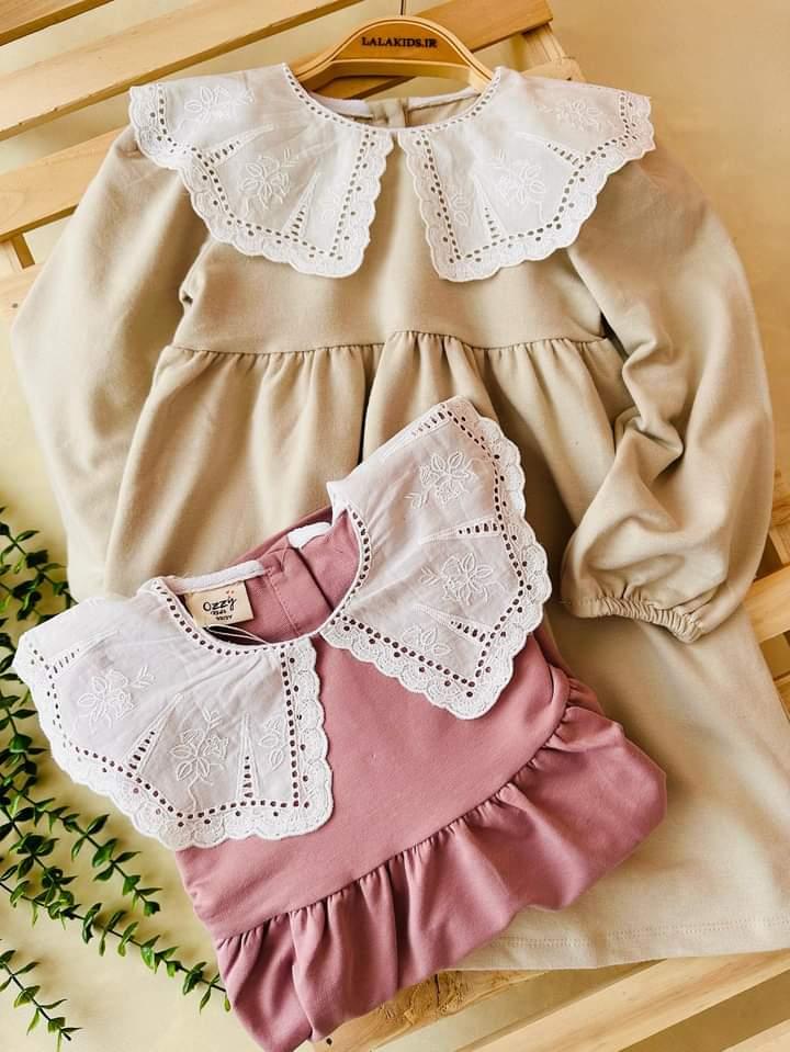 خانه دخترانه پیراهن و تونیک دخترانه پیراهن دورس یقه خامه دوزی کد 1058