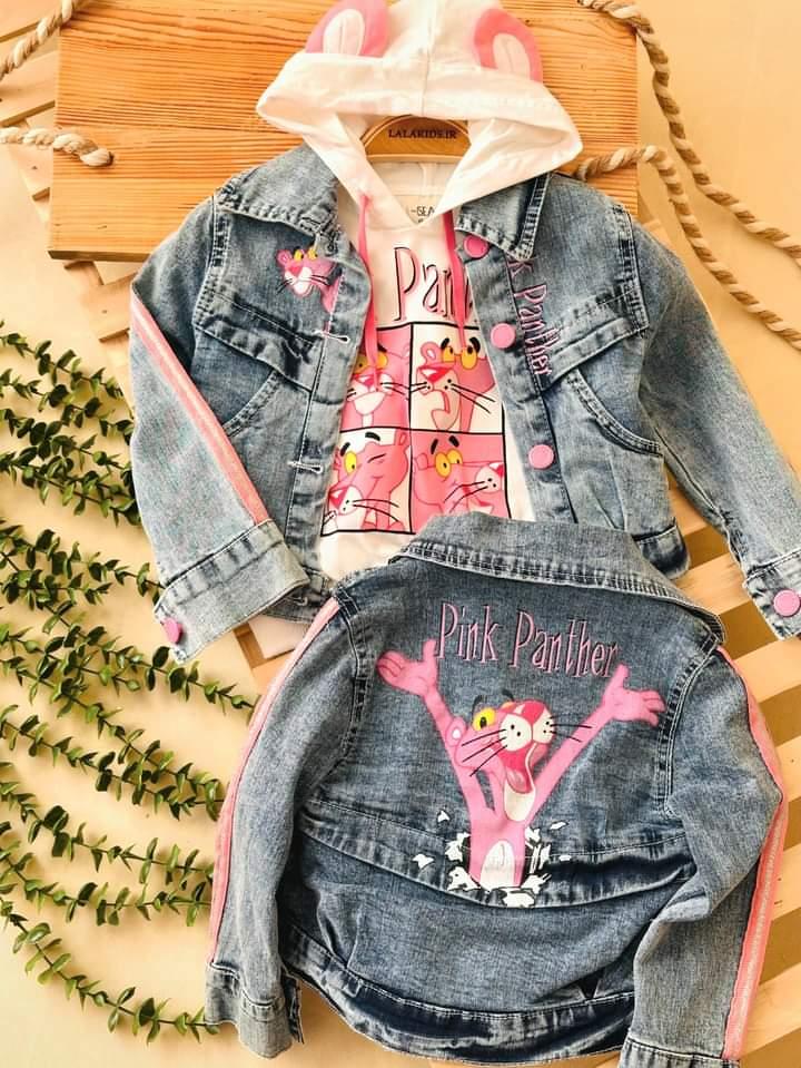 خانه دخترانه کت جین، هودی و سوئیشرت دخترانه کت جین و هودی پلنگ صورتی کد 3846