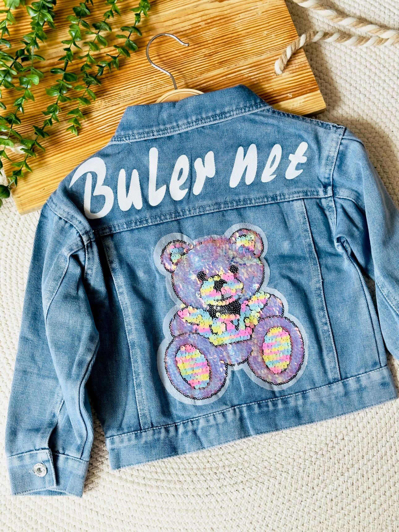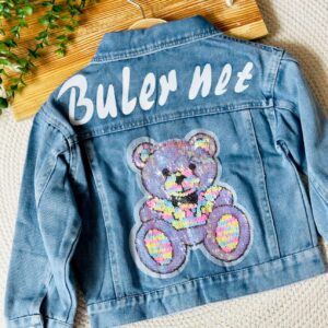 خانه دخترانه کت جین، هودی و سوئیشرت دخترانه کت پولکی خرسی کد 1349