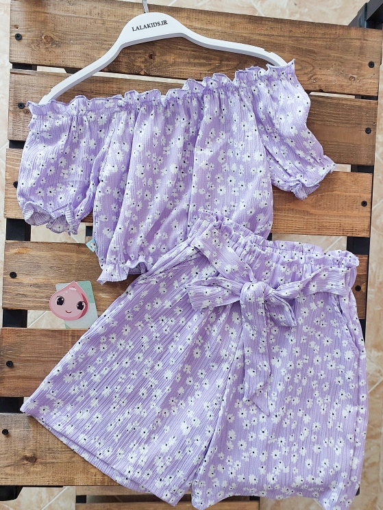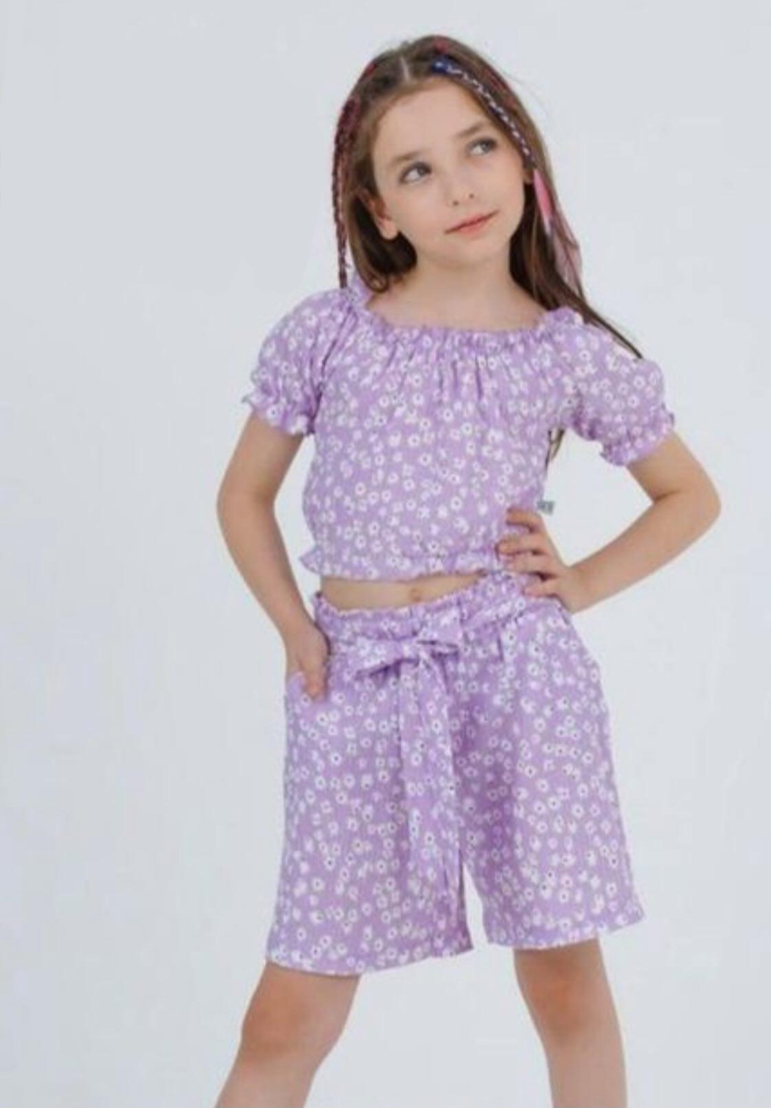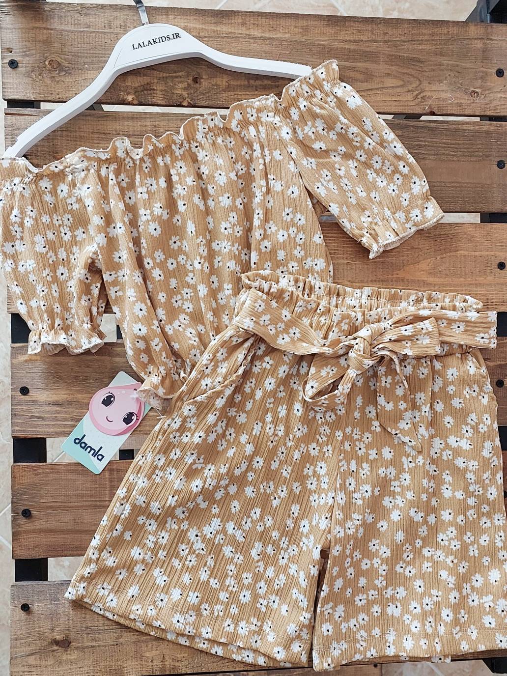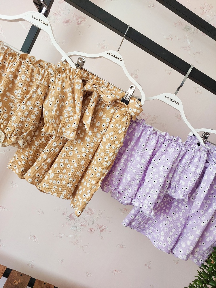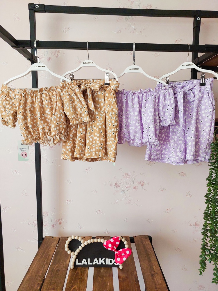 خانه دخترانه ست تیشرت شلوارک و تاپ شلوارک دخترانه کراپ و شلوارک گل گلی کد 3517