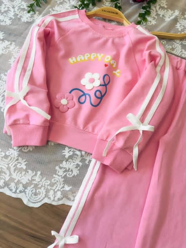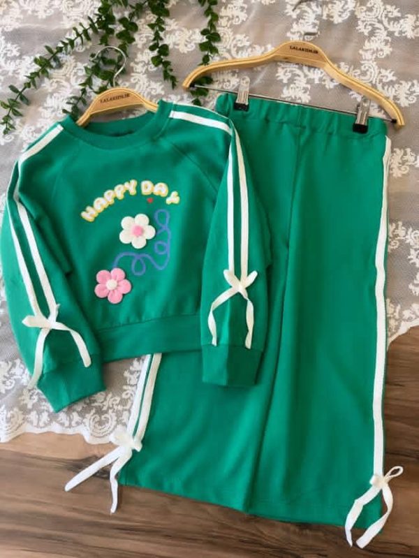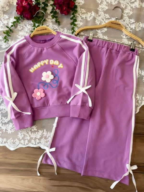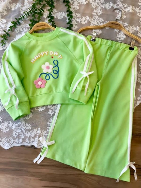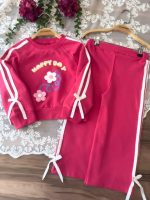 خانه دخترانه ست بلوز شلوار و تیشرت شلوار دخترانه کراپ و شلوار نوار دوزی کد 4401